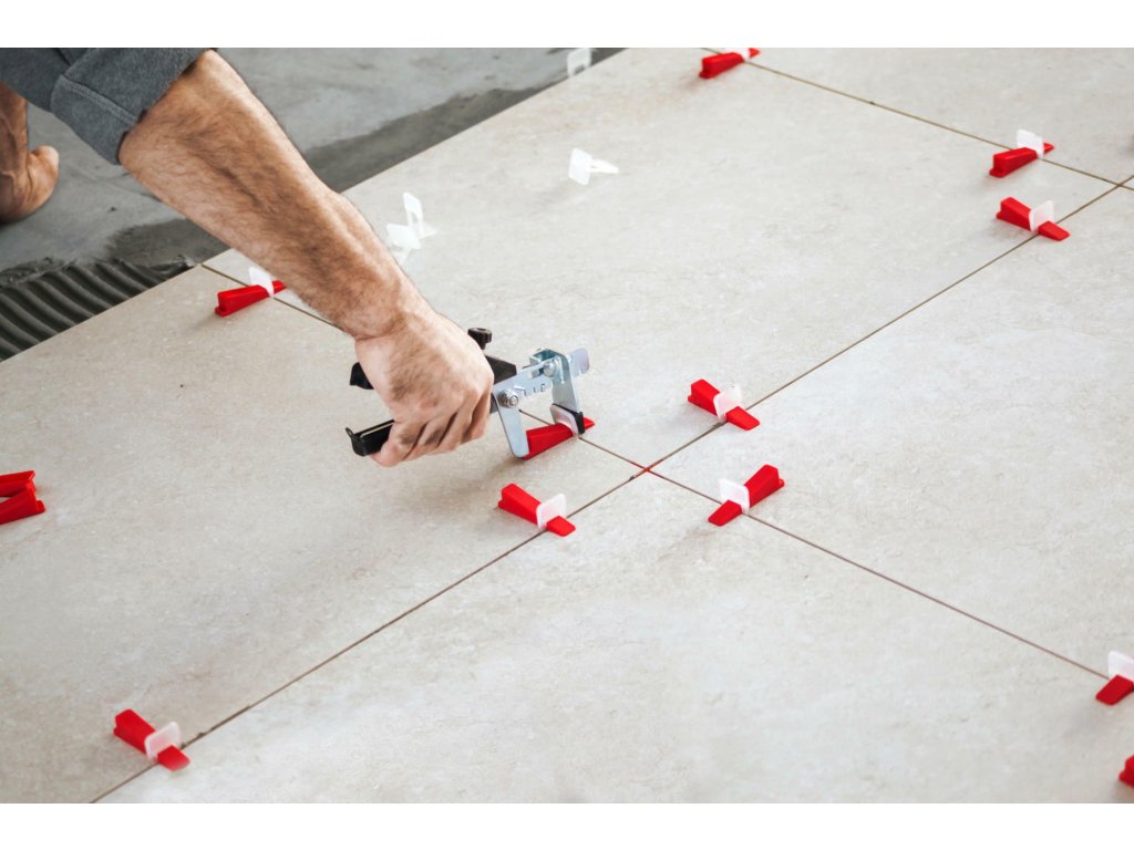 Táto praktická súprava sa skladá zo 100 kusov nivelačných klinov, klieští a gumovej paličky.