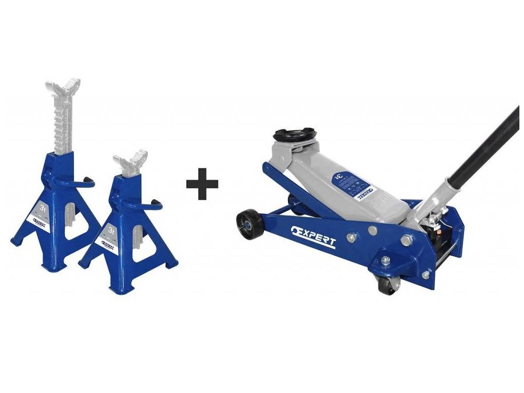 Set - pojazdný hydraulický zdvihák 3t 145 - 508 mm a 2x podpera 3t - Tona Expert E200142