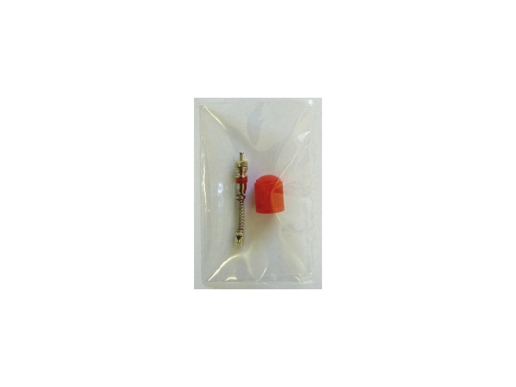 (Ventilová vložka, ktorá nedovolí, aby sa vyvažovacie granulát dostal do tesnenia vložky + plastová čiapočka červenej farby pre označenie pneumatiky s obsahom vyvažovacieho granulátu).