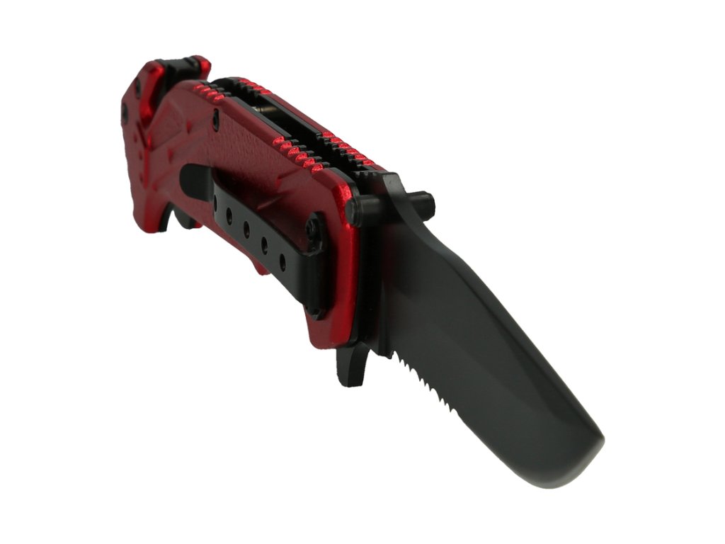 Ideálne ako núdzová výbava do auta: nôž je vybavený špeciálnou integrovanou čepeľou k preseknutiu bezpečnostných pásov ,, povrazov a pod., Zadnou stranou črienky je možné rozbiť okno. Čepeľ má páčku pre jednoduché otvorenie jednou rukou a aretáciu (zámok) pre jej zabezpečenie. Odistenie a zloženie noža možno vykonať jednoručne.