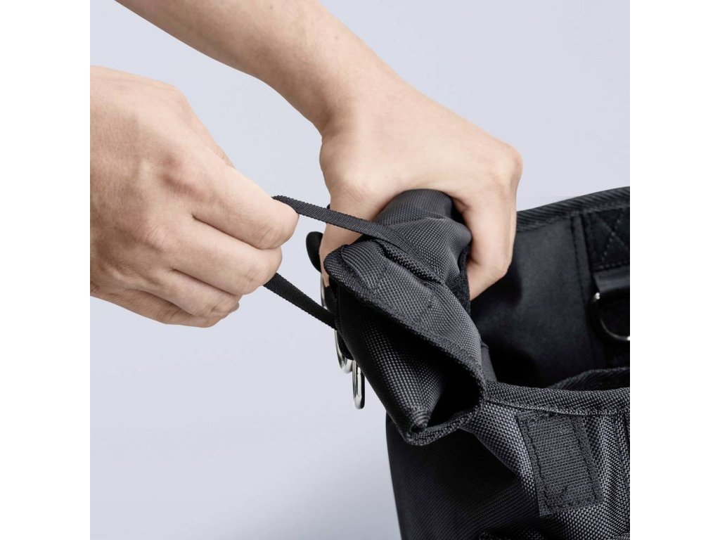 Klopa sa dá zrolovať na ľahší prístup k náradiu a je vybavená nášivkou na suchý zips na individuálne označenie majiteľa. Ramenný popruh na pohodlné prenášanie.