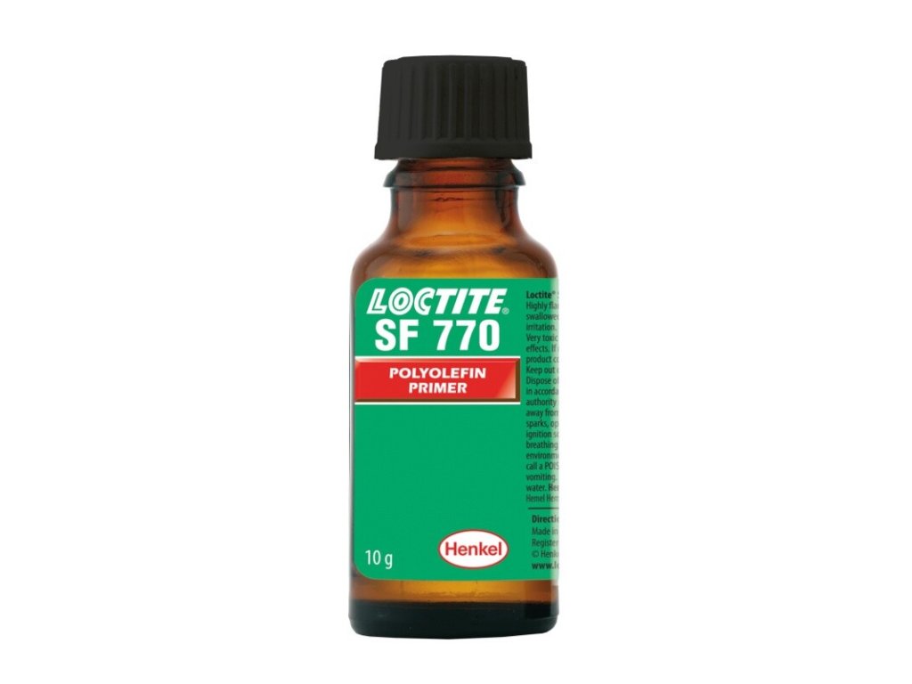Loctite SF 770 - primer - je určený na prípravu polyolefínov a iných nízkoenergetických povrchov na lepenie kyanoakrylátovými lepidlami Loctite. Na takto upravených povrchoch sú výsledky vytvrdzovania kyanoakrylátových lepidiel vo všeobecnosti podobné výsledkom opísaným v technických listoch príslušných lepidiel. Odporúča sa len na ťažko lepiteľné podklady, medzi ktoré patria polyetylén, polypropylén, polytetrafluóretylén (PTFE) a termoplastické gumové materiály. Základný náter pre polyolefíny sa neodporúča používať v zostavách, kde sa vyžaduje vysoká pevnosť pri odlepovaní. Používajte v kombinácii so všetkými sekundovými lepidlami Loctite, najmä Loctite 406, 460, 496. Primer je náter, ktorý sa nanáša na lepený povrch pred aplikáciou lepidla a pomáha vytvoriť priľnavosť lepidla k povrchu (najmä na ťažko lepiteľných materiáloch).