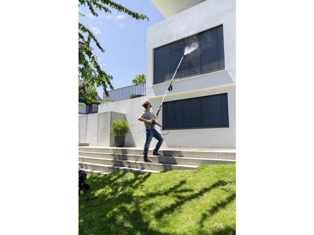 Obsluha je veľmi jednoduchá vďaka pohodlnému teleskopickému mechanizmu stlačením tlačidla. Teleskopický nadstavec sa dá vysunúť od 1,20 do 3,70 metra, čo umožňuje čistiť plochy vysoké až 5 metrov. Pripojenie všetkých striekacích pištolí je veľmi jednoduché. Tlak možno pohodlne regulovať pri použití s vysokotlakovou striekacou pištoľou Power Control Plus alebo Smart Control.