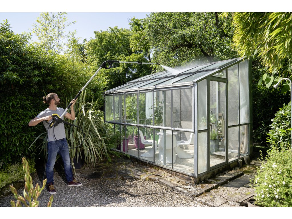 Teleskopický nadstavec možno použiť na rýchle a bezproblémové čistenie aj ťažko prístupných miest, ako sú napríklad fasády. Nastaviteľný kĺb, ktorý sa otáča o 180 stupňov, je ďalšou výhodou a umožňuje čistenie zimných záhrad, šikmých striech a prístreškov pre autá.
