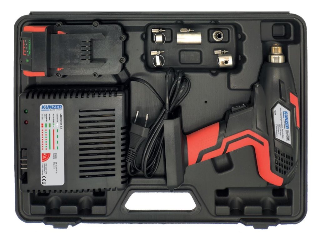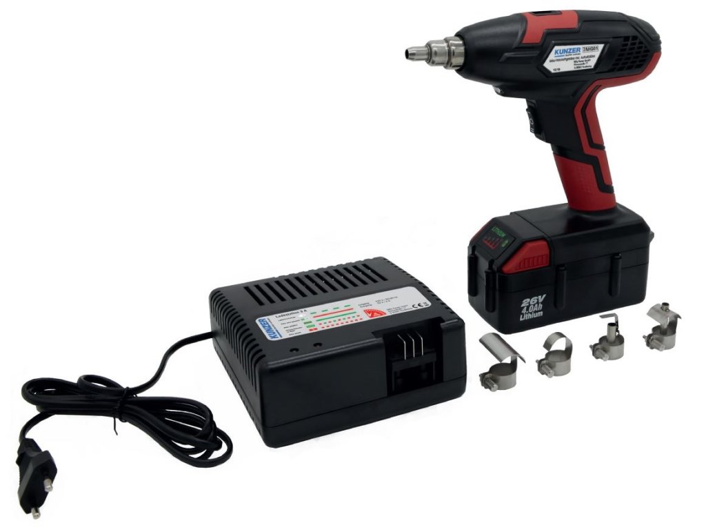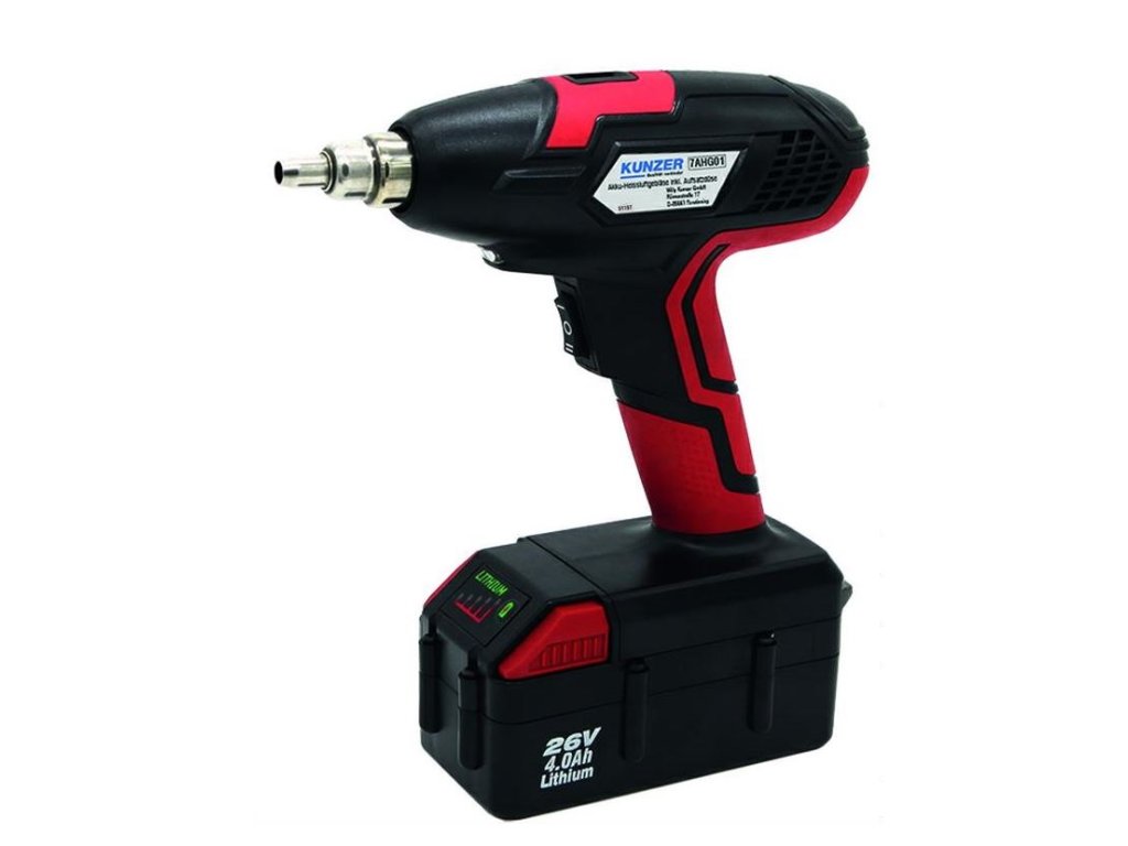 Teplovzdušná pištoľ AKU 300W 4,0 Ah Li, sada 5 trysiek a nabíjačka - Kunzer