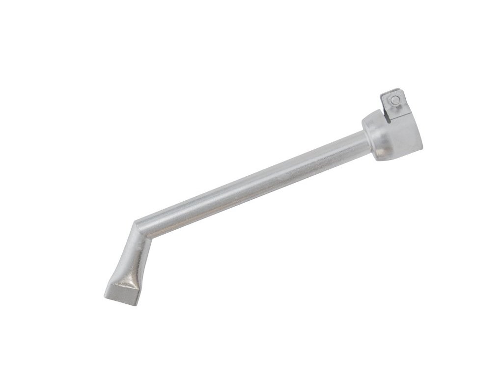 Dlhá zakrivená dýza pre teplovzdušnú zváračku plastov ZX1600, uhol 45°, skrutkový zámok, výstup 23 x 3 mm, celková dĺžka 230 mm, zásuvka O 32 mm.