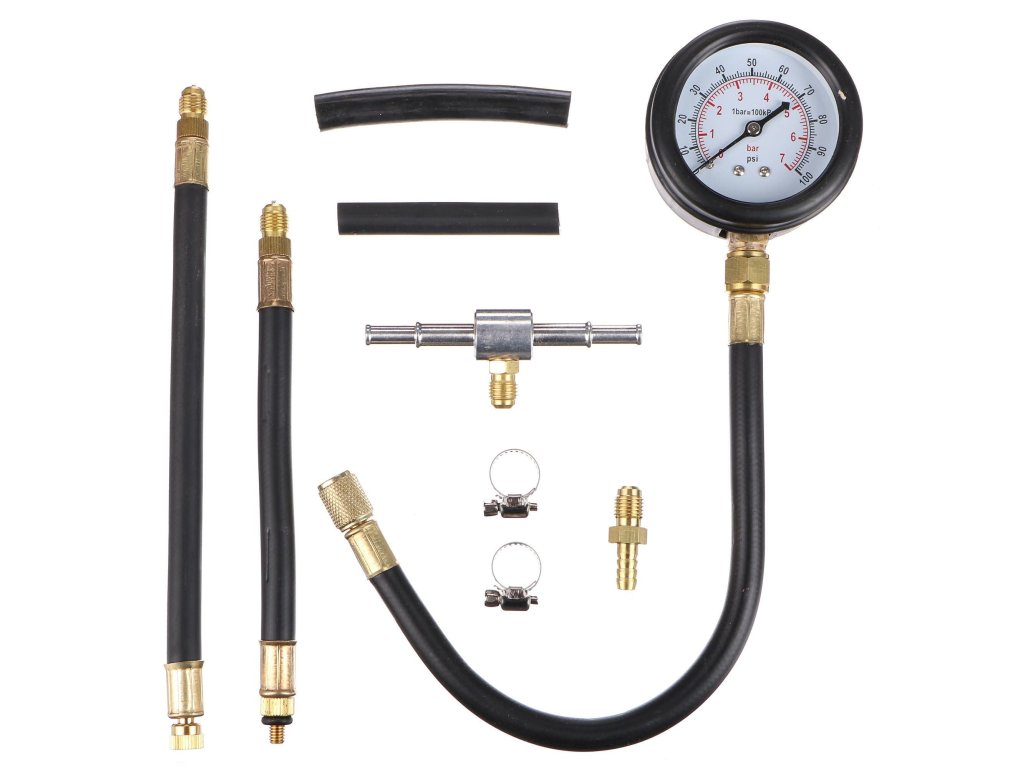 Súprava na testovanie kompresie benzínového motora s analógovým tlakomerom je určená na zisťovanie opotrebovania a netesností okolo piestnych krúžkov a iných nedostatkov spôsobujúcich úniky tlaku motora.