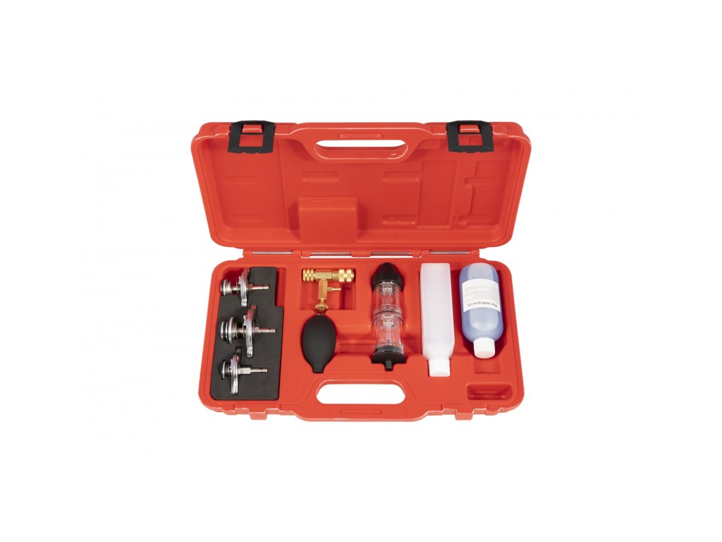 Tester funkčnosti tesnenia hlavy valcov, 3 adaptéry, 1 univerzálny balónik, nádoba s adaptérom na reakčnú kvapalinu + kvapalinu - QUATROS QS30187A.