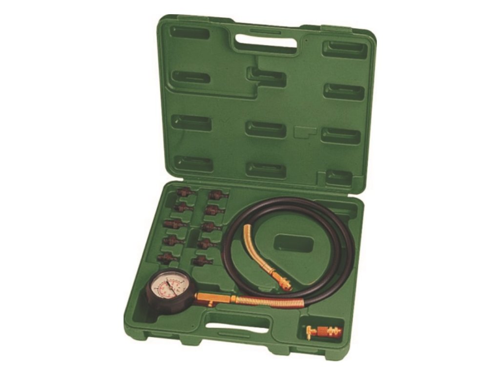 Súprava obsahuje manometer a 10 kusov koncoviek pre väčšinu bežných osobných a dodávkových áut vrátane niektorých typov nákladných vozidiel značiek MAN, DAF, Renault, Volvo, Scania.