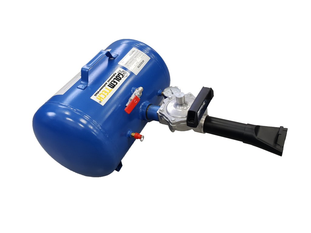 Vzduchové tlakové delo s CE certifikátom, bezpečnostnými ventilmi, manometrom a 30-litrovú tlakovou nádobou. Prenosné tlakové delo Golemtech 30L Vám pomôže pohodlne vyriešiť prob, kedy pätky bezdušových pneumatík nechcú naskočiť na ráfik. Pri použití sa hlavica tlakového delá vsunie medzi pätku pneumatiky a ráfik az tlakovej nádoby sa naraz vypustí veľké množstvo stlačeného vzduchu. Ten rýchlo vyplní pneumatiku a nadvihne jej bočnici, ktorá sa prisunie k ráfiku. Tlakové delo pohodlne zachovaj pripojením na kompresor, alebo rozvod vzduchu.