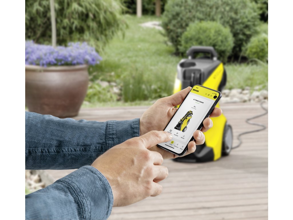 Tlakovú umývačku K 7 Premium Smart Control možno jednoducho pripojiť k smartfónu prostredníctvom technológie Bluetooth. Používateľ tak má k dispozícii podporu prostredníctvom aplikácie Kärcher Home & Garden s tipmi, trikmi a nastaveniami pre mnohé čistiace situácie a čistiace predmety.