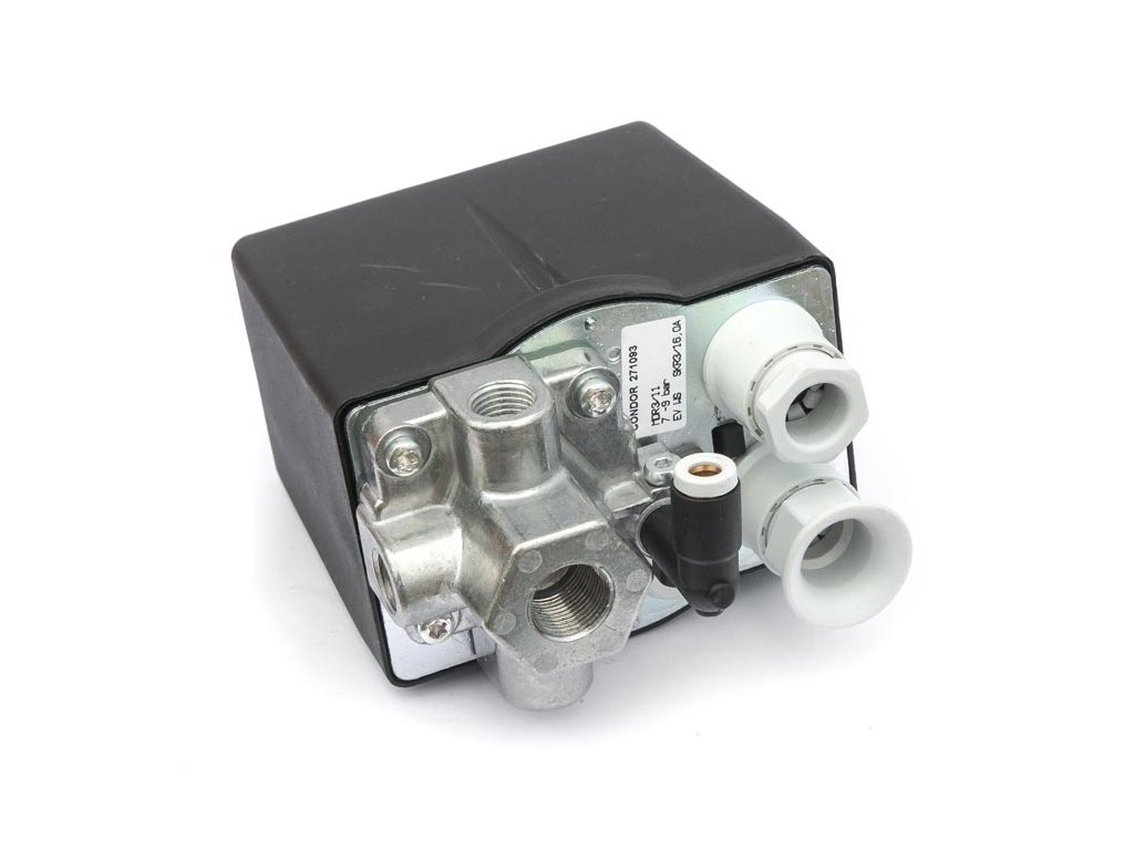 Tlakový spínač s nastaviteľným vypínacím tlakom 4 – 11 bar. Trojpólový vypínač a odvzdušňovací ventil. Pre kompresory s elektromotormi 5,5 – 7,5 kW.