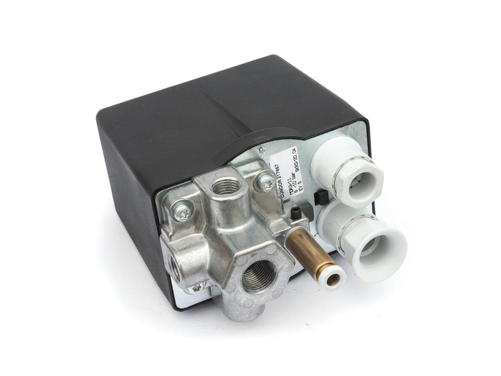 Tlakový spínač s nastaviteľným vypínacím tlakom 4 – 11 bar. Trojpólový vypínač a odvzdušňovací ventil. Pre kompresory s elektromotormi 7,5 kW.