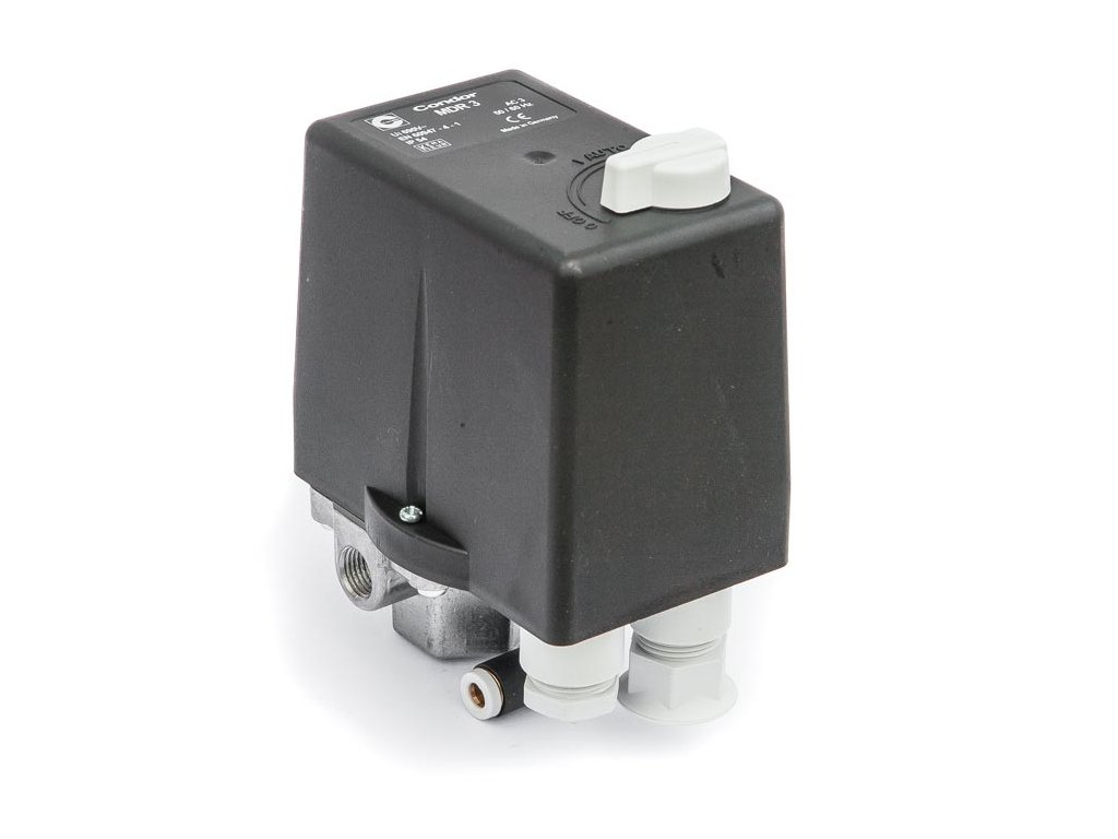 Tlakový spínač s nastaviteľným vypínacím tlakom 4 – 11 bar. Trojpólový vypínač a odvzdušňovací ventil. Pre kompresory s elektromotormi 2,2 – 4 kW.