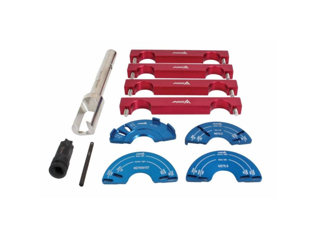 Kvalitná sada prípravkov určená na nastavenie uhla rozvodu vačkového hriadeľa za účelom získania správnej polohy pri motoroch Mercedes-Benz M152, M157, M276 a M278.