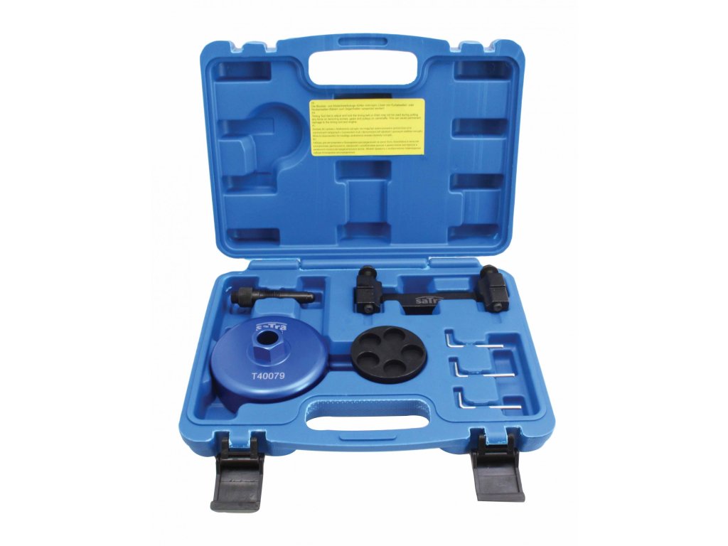 Obsahuje: čap nastavovača kľukového hriadeľa, poistku vačkového hriadeľa, poistný čap napínača, zostavu nastavovača vačkového hriadeľa, adaptér skrutky remenice kľukového hriadeľa.