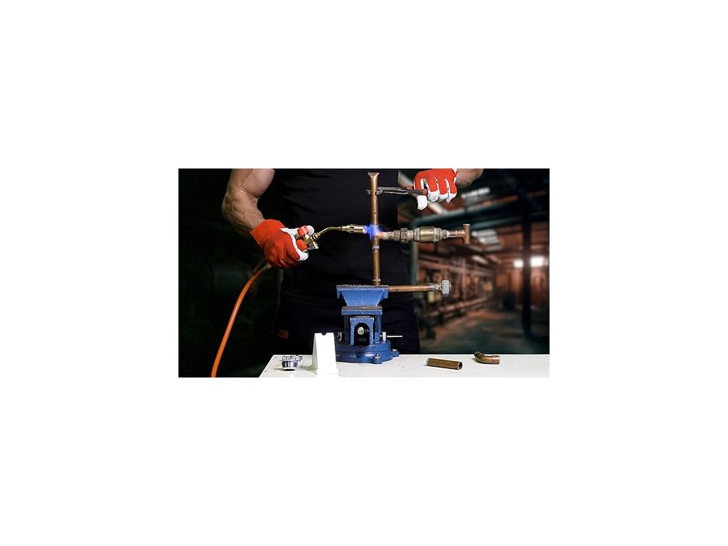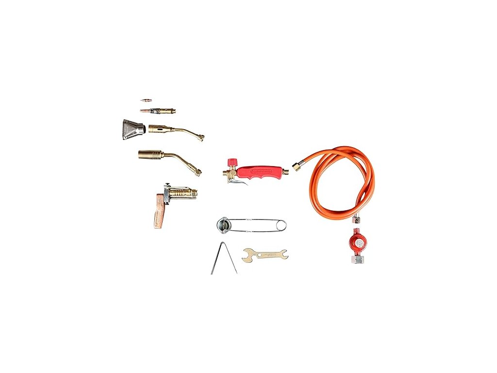 Praktická a vysoko výkonná spájkovacia súprava na spájkovanie oceľových rúr, plechov, inštalatérskych alebo vykurovacích zariadení.