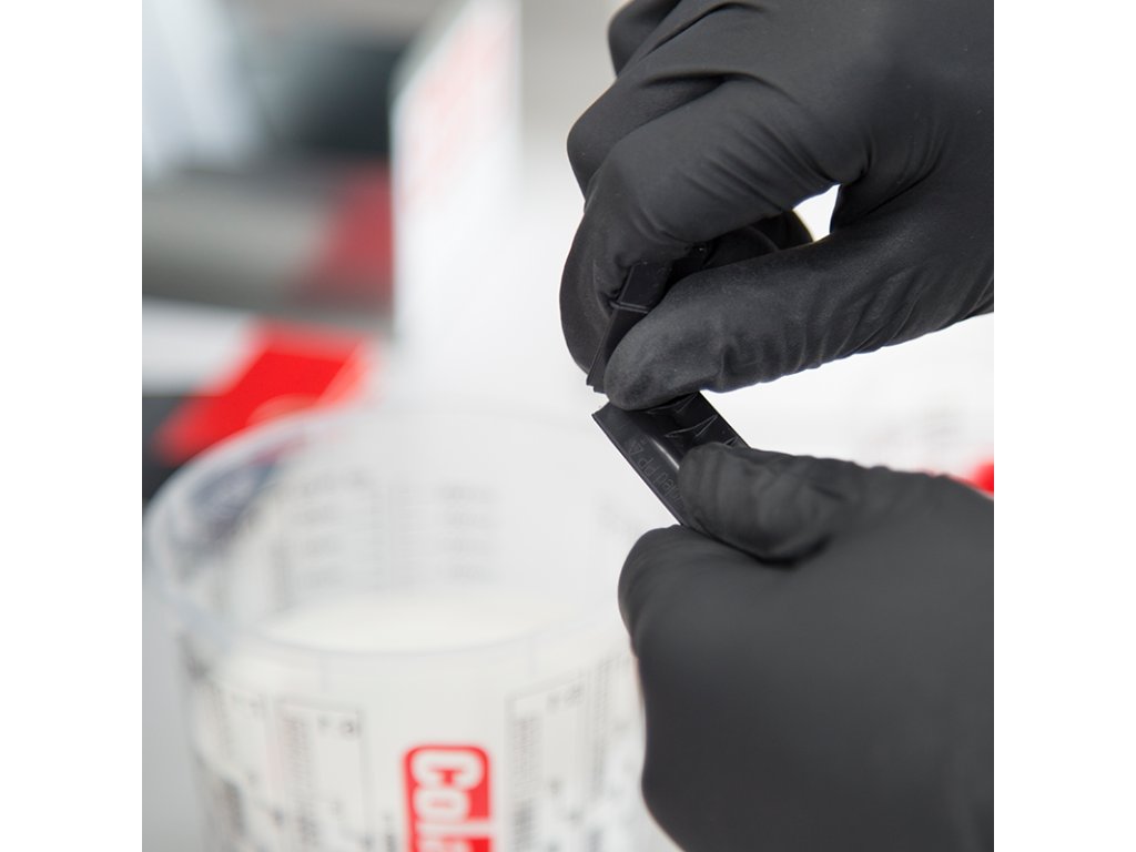 Navrhnuté tak, aby čo najviac obmedzilo plytvanie farbou: vrchný oddeliteľný koniec sa odlomí a zotrie sa s ním materiál zachytený na pracovnej časti pri miešaní.