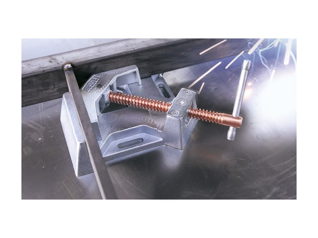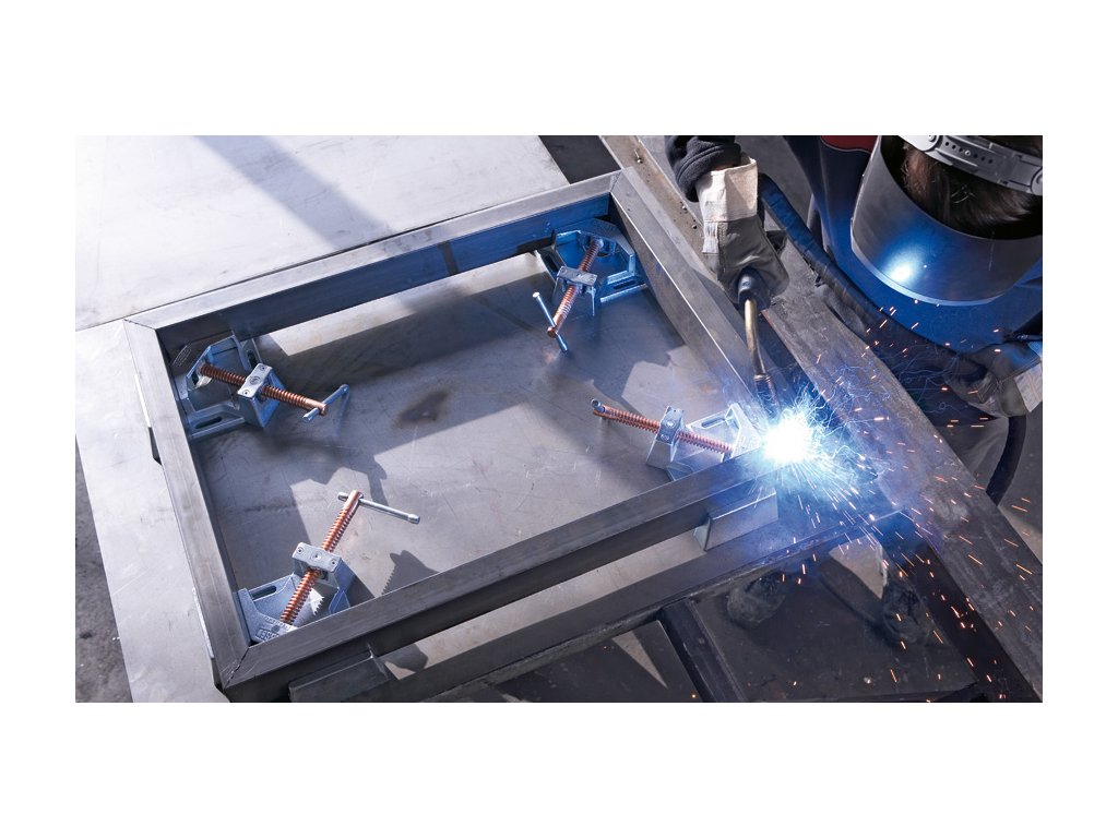 Špeciálny upínač pre presné a silné pravouhlé uchytenie obrobkov pri zváraní, skladaní oceľových konštrukcií, pre zámočnícke a ďalšie práce. Pomocou neho je možné upnúť obrobky aj rôznych hrúbok. Vďaka otvorenej pracovnej zóne je pri práci k upevneným predmetom výborný prístup.
