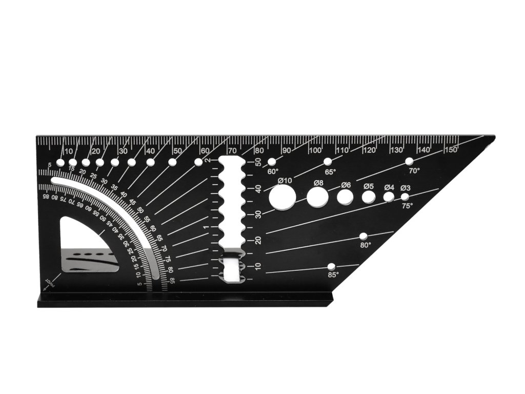 Na presný prenos uhla skosenia na obe strany obrobku je uholník vybavený značkami.