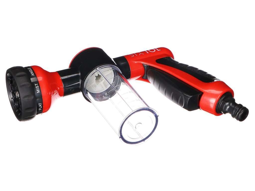 Vysokokvalitná pištoľ na umývanie automobilov s nádržkou na saponát CAR DETAILING SPRAY 2 je skvelým pomocníkom na jednoduché a dôkladné umývanie automobilov. Pištoľ sa jednoducho pripojí k štandardnej záhradnej hadici, vďaka čomu sa čistiaci prostriedok z nádržky automaticky zmieša s vodou a aplikuje priamo na povrch vozidla. Súčasťou pištole je aj rozprašovacia hlavica s 8 rôznymi vzormi rozprašovania, vďaka čomu sa hadica dá použiť v širokej škále aplikácií, a to nielen na umývanie auta, ale aj na umývanie automobilov, bicyklov, motocyklov, bazénov, preplachovanie nádrží, čistenie kobercov alebo podláh a čistenie vonkajších okien. Ergonomická rukoväť a pohodlné ovládanie pištole uľahčujú manipuláciu pri čistení. Táto praktická umývacia pištoľ je ideálnou voľbou na rýchle a efektívne umývanie auta s profesionálnymi výsledkami.Hlavné výhody: