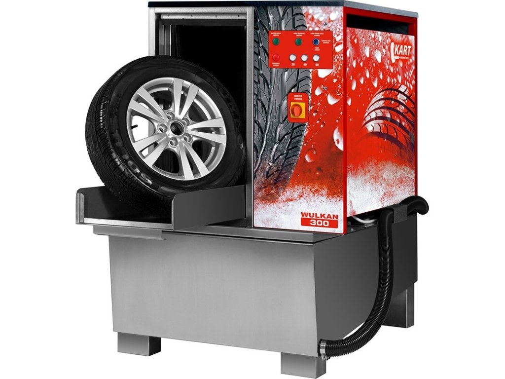 Umývací stroj - umývačka WULKAN 300 na pneumatiky menších vozidiel (pre osobné autá, dodávky a pod.).
