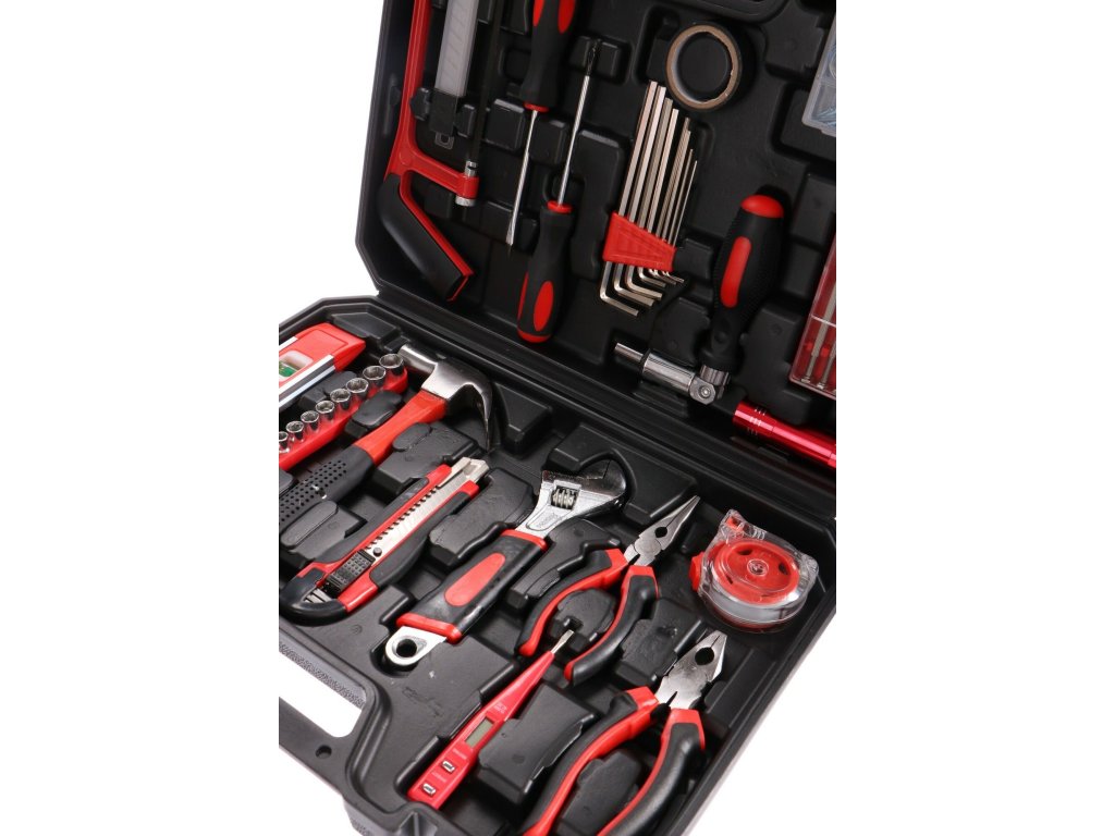 Táto všestranná súprava náradia je vhodná na použitie v domácnosti, dielni alebo garáži. Prakticky zloženú súpravu ocení každý domáci majster, ktorý nechce kupovať jednotlivé nástroje samostatne.
