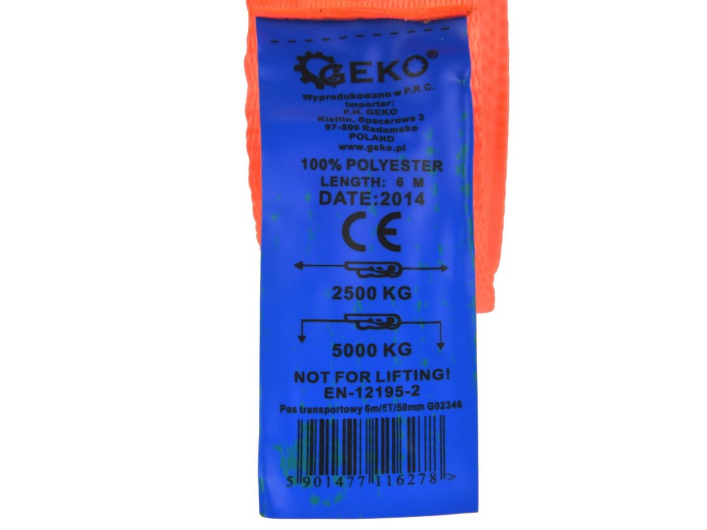 Väzacie pásy, tzv. kurtové, s voľným koncom (bez západky), nosnosť 5000 kg, šírka 5 cm, v rôznych dĺžkach - GEKO