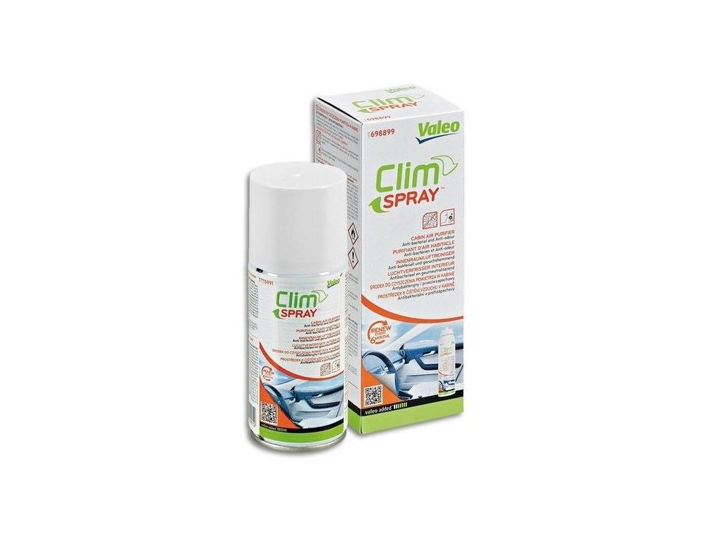 Neutralizuje pachy (napr. Z plesne, dymu, domácich zvierat a pod.) A odstraňuje baktérie v automobile na povrchoch a v klimatizáciu. Po použití Clim Spray je vzduch v aute čistý a svieži.