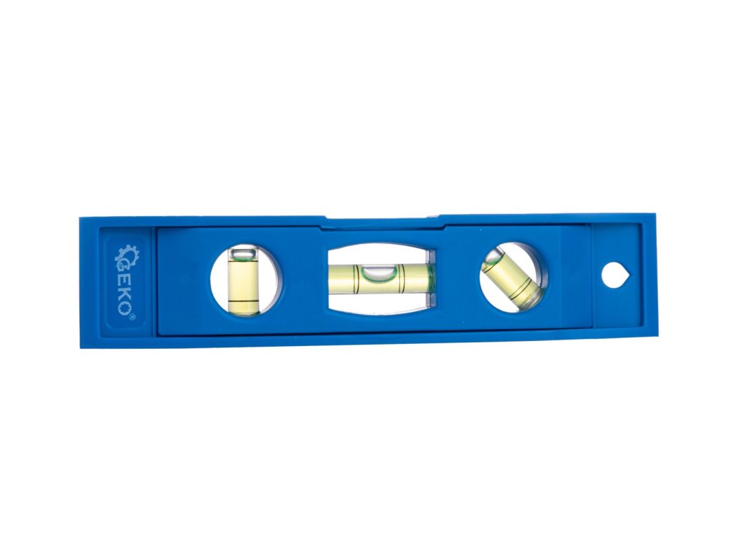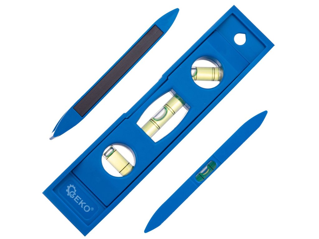 Kompaktná, ľahká plastová vodováha s tromi vodováhami, dĺžka 15 cm, modrá