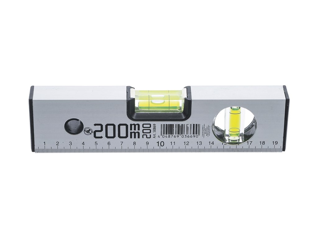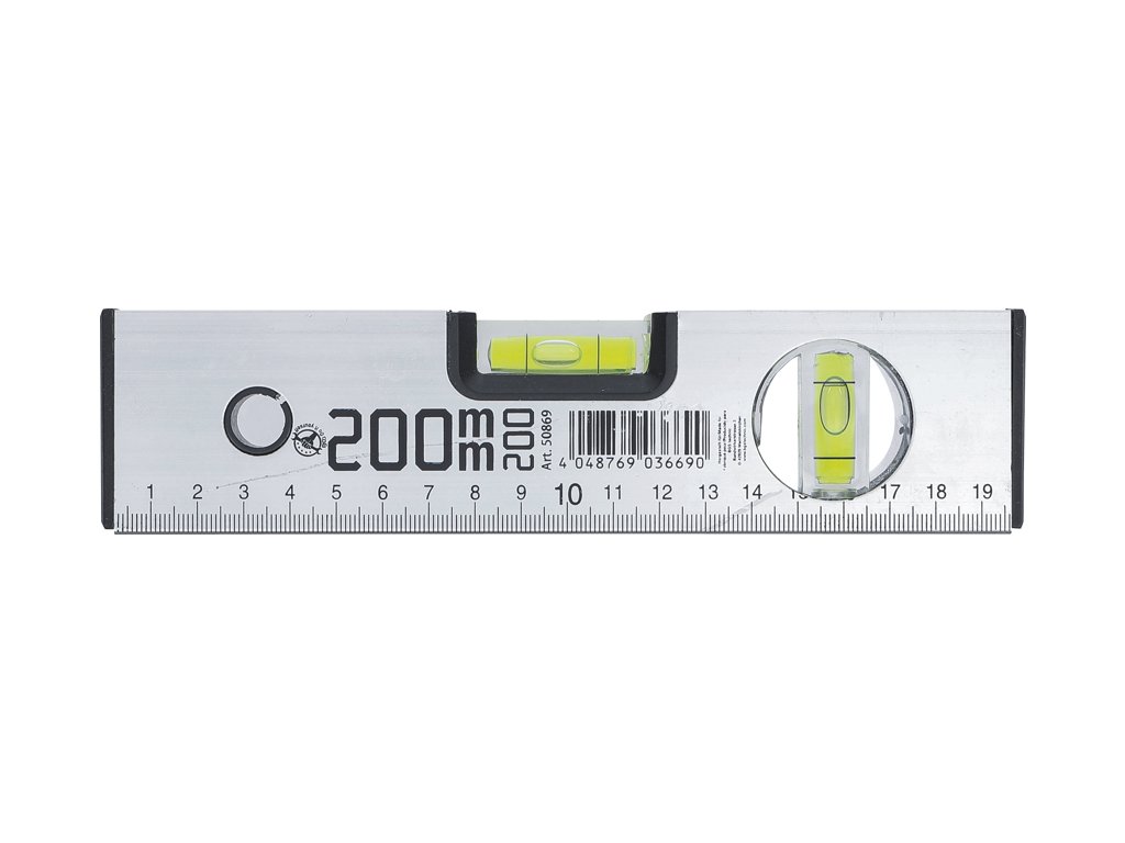 Hliníková vodováha na vertikálne a horizontálne meranie v dĺžke 200 mm je určená na presné meranie rovín.