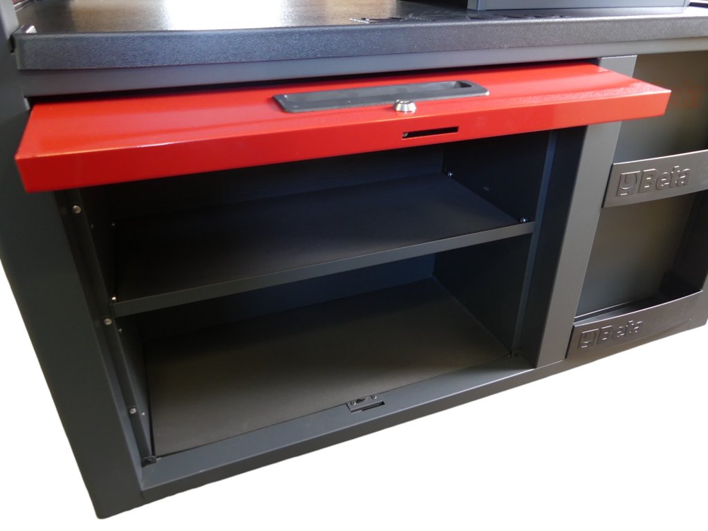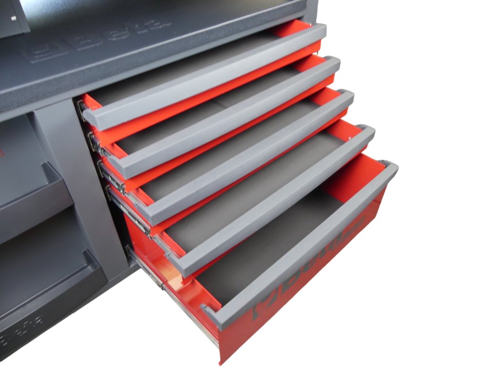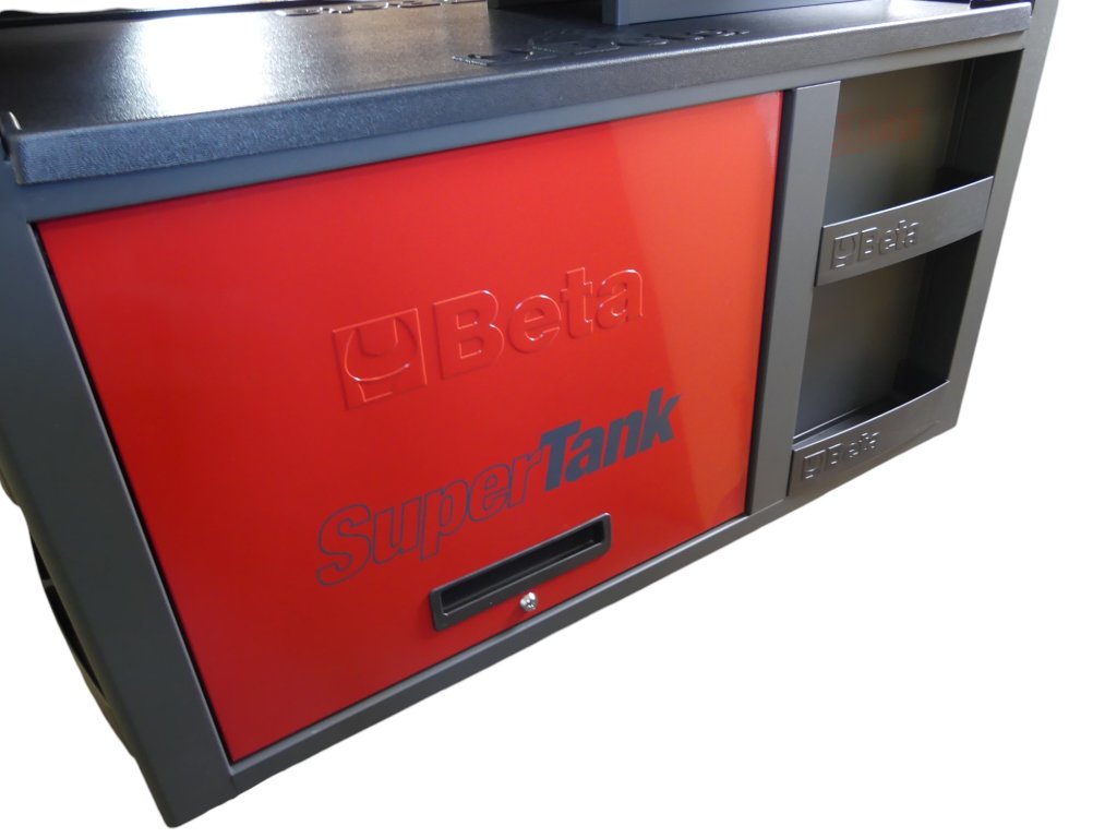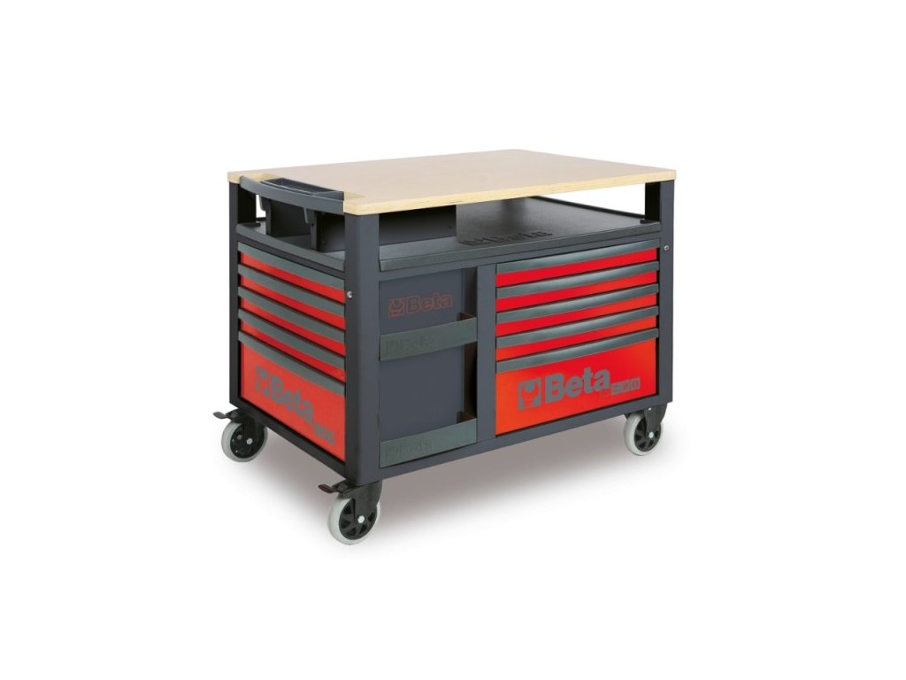 Vozík na náradie "Supertank", s drevenou doskou, 10 zásuviek, červený - Beta Tools