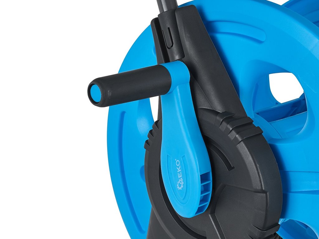 Nepostrádateľný pomocník pre každého záhradníka, ktorý si cení poriadok a pohodlie. Robustná konštrukcia z odolného plastu zaručuje dlhú životnosť a odolnosť voči poveternostným podmienkam. Vďaka zabudovanej vodiacej lište sa hadica navíja rovnomerne, čím sa eliminuje jej zauzľovanie a zamotávanie. Ručná kľuka umožňuje rýchle a pohodlné navíjanie a odvíjanie hadice.