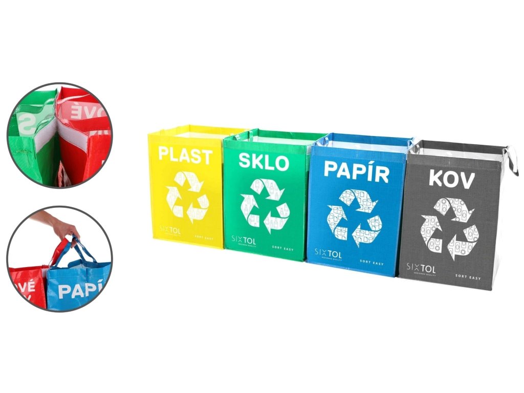 Vrecia na triedený odpad (plast, sklo, papier, kov) 30 x 30 x 40 cm, 4 x 36 l, 4ks - SIXTOL