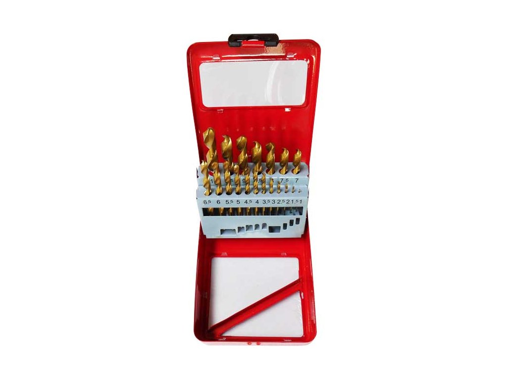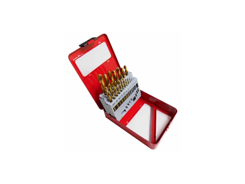 Vrtáky HSS TiN do kovu, 1.0-10.0 mm, sada 19 ks v plechovom boxe