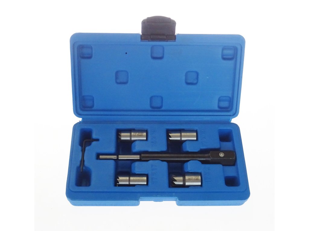 Sada fréz s držiakom na úpravu sediel dieselových vstrekovačov, v plastovej kazete.