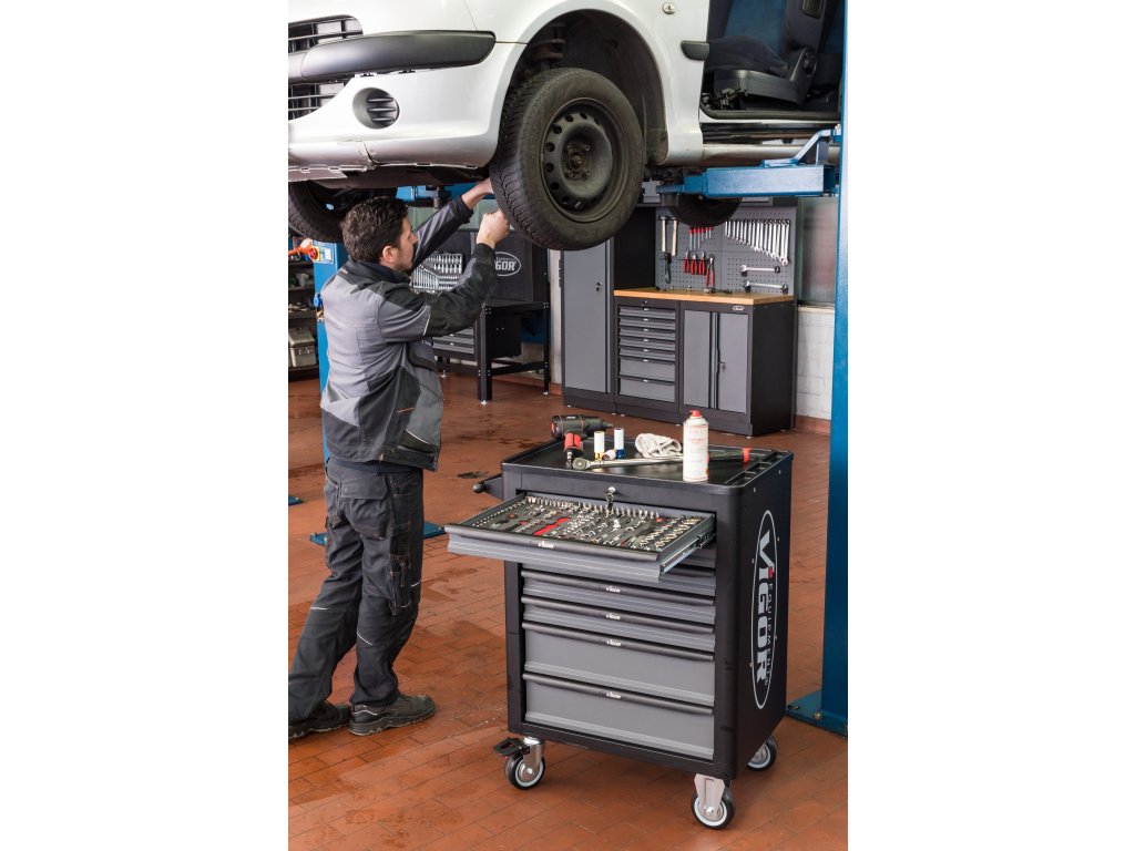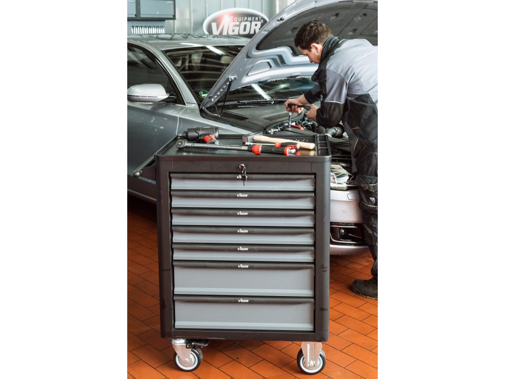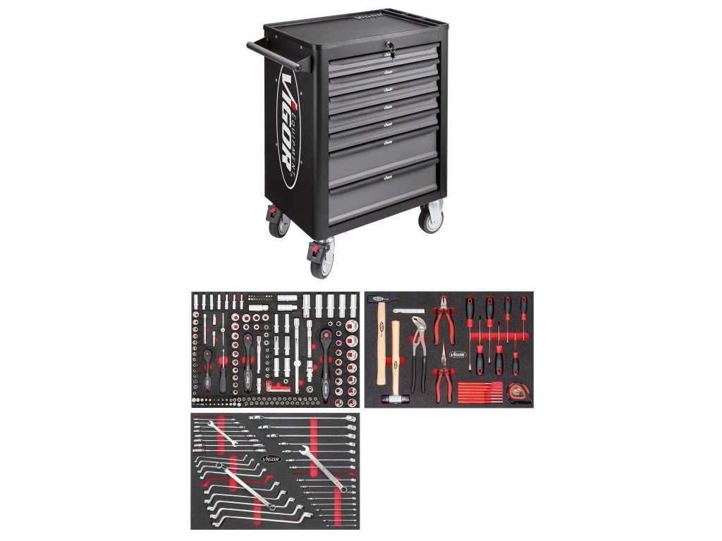 Vybavený montážny vozík s náradím, 248 dielov, so 7 zásuvkami a centrálnym zamykaním - VIGOR V4219