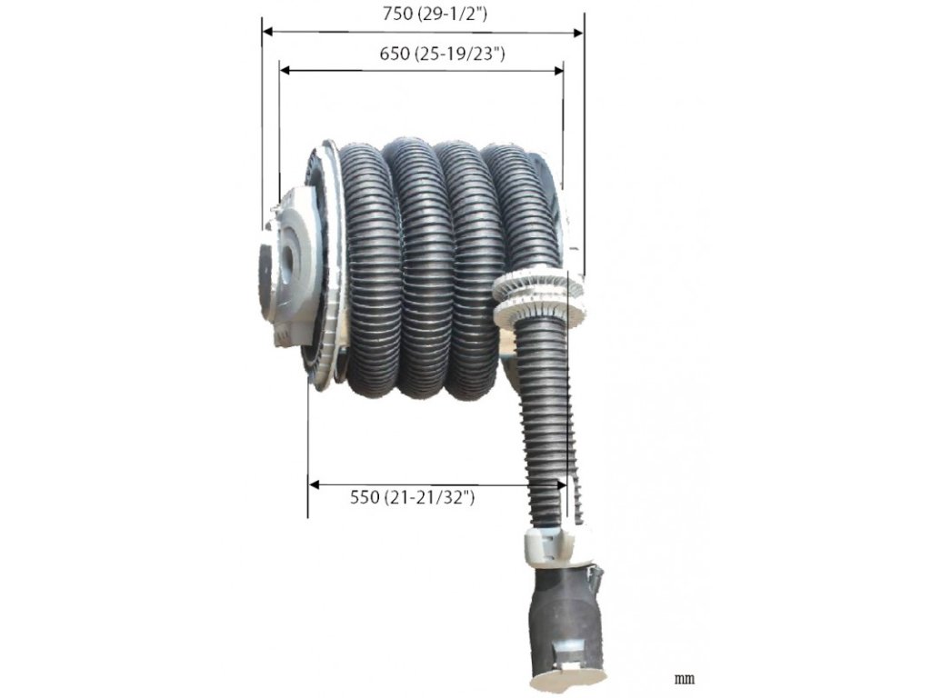 - S dĺžkou 8 metrov hadica poskytuje dostatočný dosah v dielni a umožňuje flexibilitu pri umiestňovaní vozidiel vzhľadom na výfukový systém.
