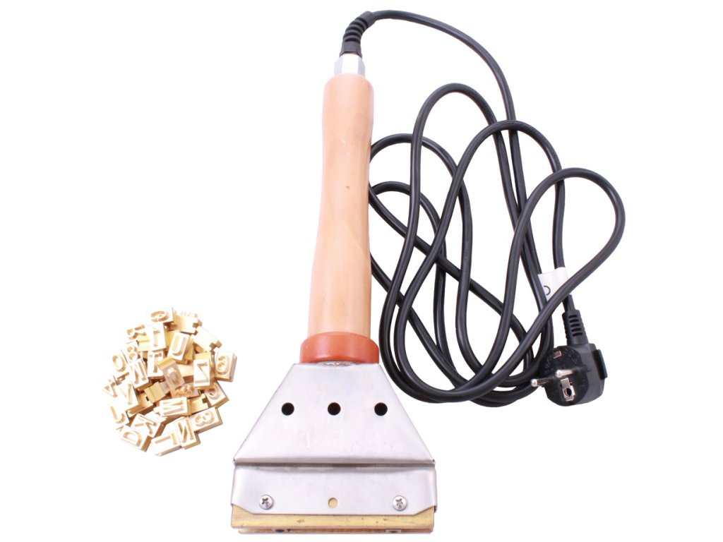 Elektrická napaľovačka na značenie pneumatík písmenami a číslicami. Na vypaľovacie hlavicu sa zmestí maximálne 10 znakov, zaistených pomocou odnímateľné drážok na oboch stranách.