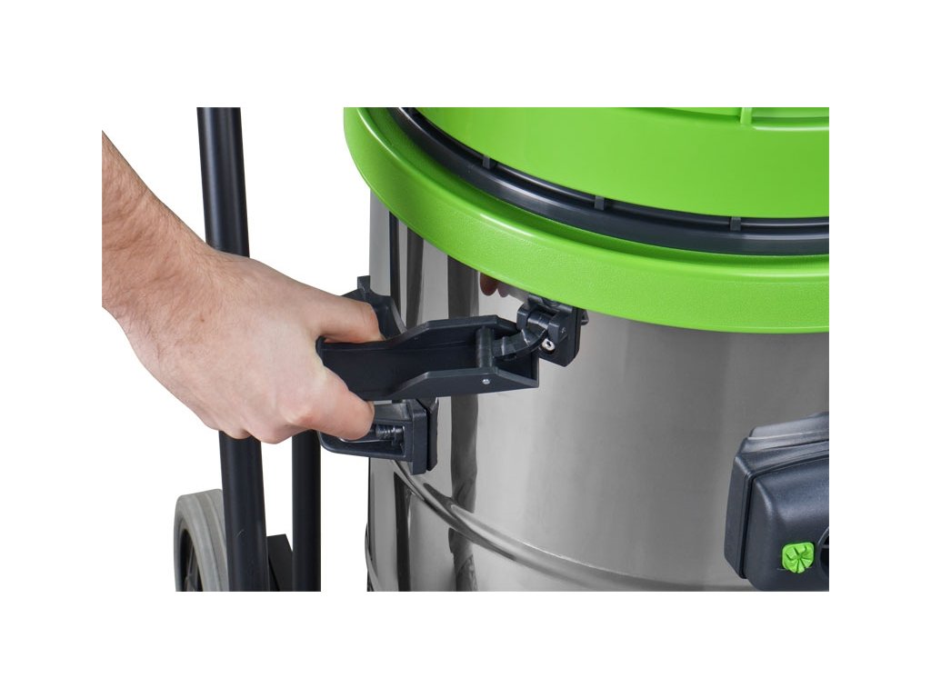 Trojmotorový vysávač určený na vysávanie kvapalín, triesok a ďalších pevných častíc s nerezovou nádobou a naklápacím mechanizmom. Vstavaná zásuvka na pripojenie elektrického náradia bez automatického spustenia pri zapnutí náradia.