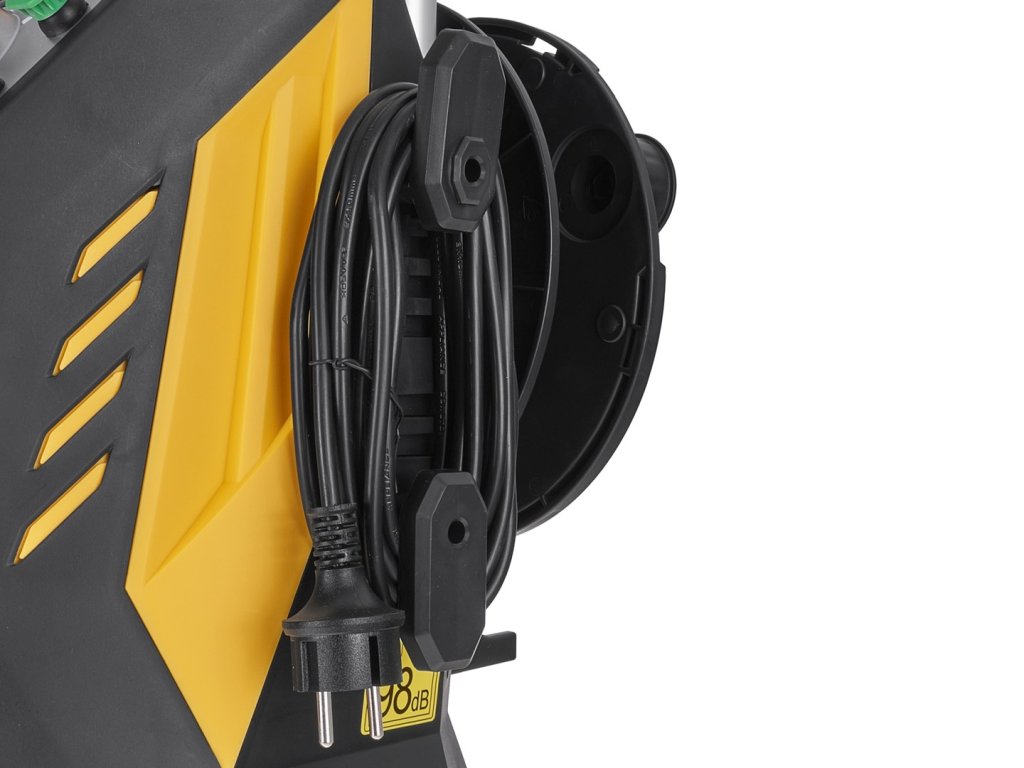 Elektromotor s výkonom 2500 W a kvalitným vodným čerpadlom umožňuje vytvoriť menovitý tlak 130 barov, pričom maximálny prevádzkový tlak je 195 barov.