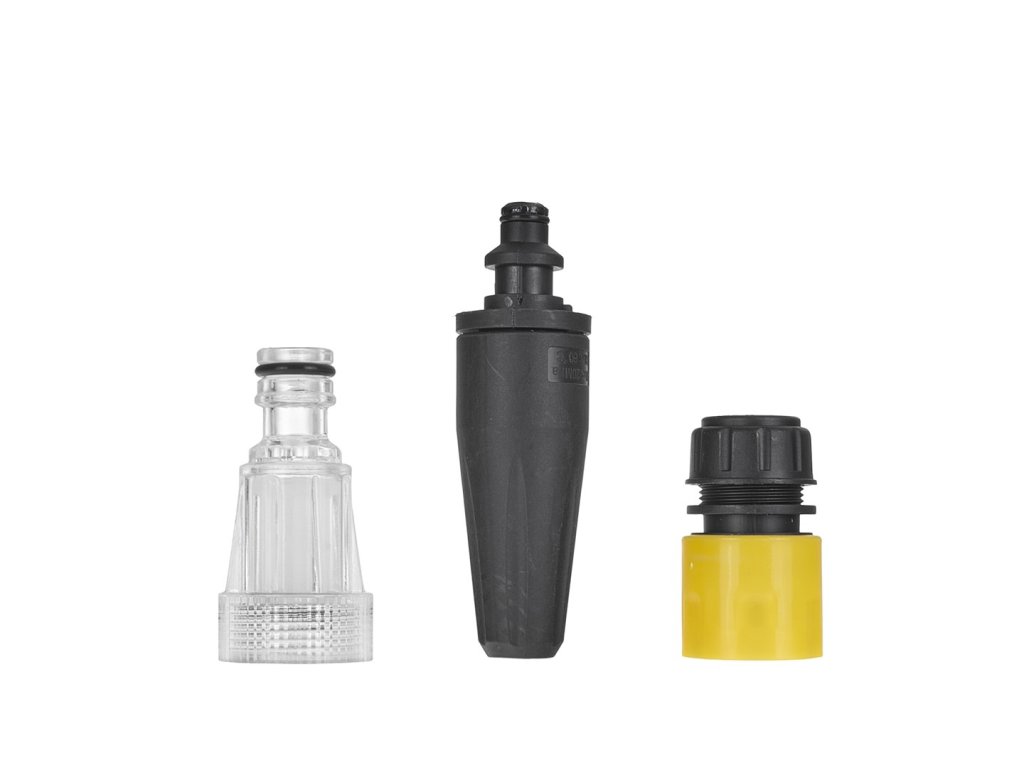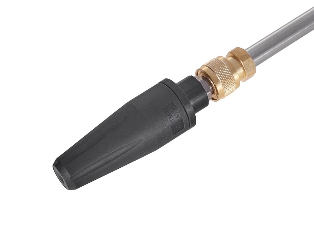 Výstupný tlak možno ľahko zvýšiť na pôsobivých 300 barov len pomocou turbo trysky, ktorá je súčasťou súpravy.