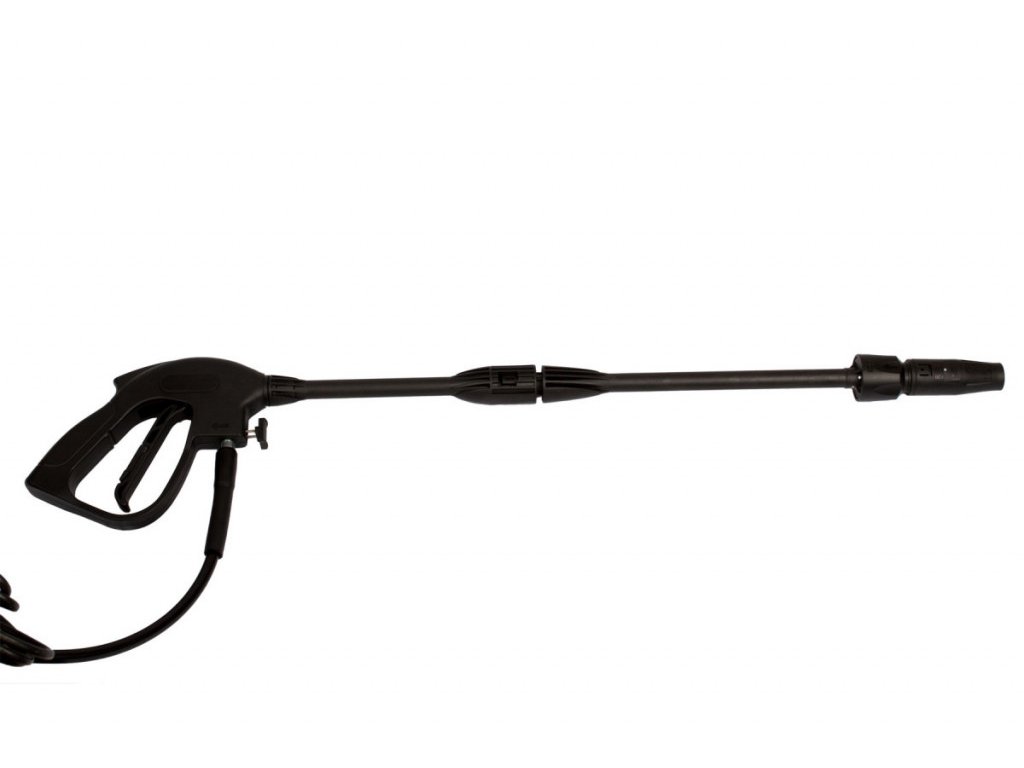 Prvá časť s rukoväťou a spúšťou má na sebe pripojenú krátku hlaveň, do ktorej pripojíme predlžovací nadstavec a do neho potom môžeme pripojiť rozstrekovač, ktorým usmerňujeme a regulujeme silu a prúd vody. Pre čistenie trysky nájdete v balení ihlový čistič usadenín.