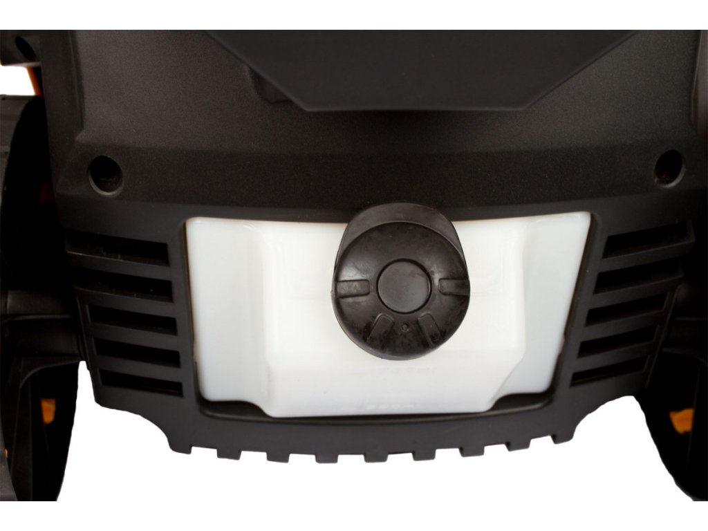 Na zadnej strane tela je potom držiak pre elektrický kábel, na ktorý ho naviniete po použití čističa. Pod ním je biela nádržka na saponát.