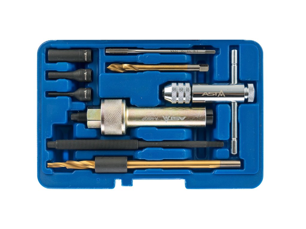 Vyťahovák na demontáž žeraviacich sviečok, závit M9 x 1.0 mm, sada 9 dielov