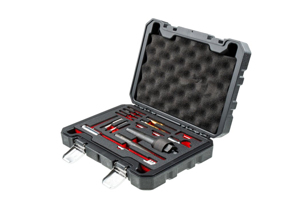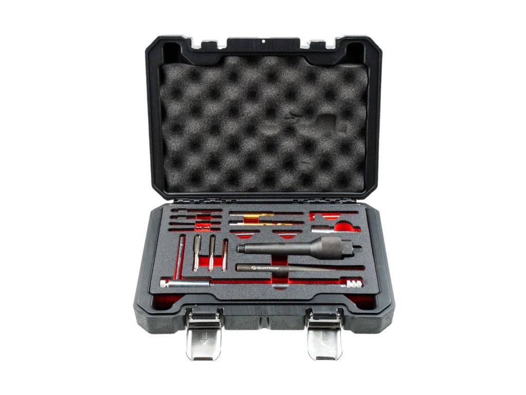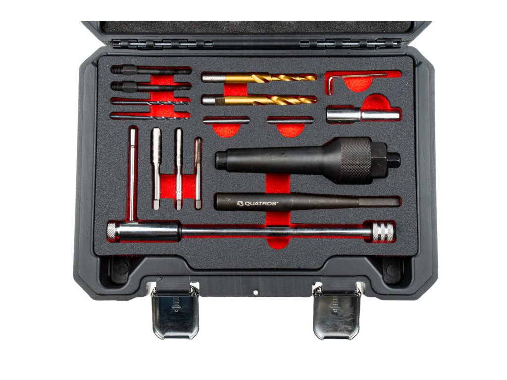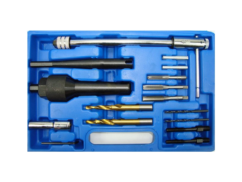 Súprava pre odstránenie poškodených, zalomených žeraviacich sviečok 8 mm a 10 mm. Oprava môže byť vykonaná bez odstránenia hlavy. V tomto prípade sa namiesto príslušného vstrekovacieho ventilu, má byť namontovaný Pneumatický adaptér. Stlačený vzduch zabráni vstupu spracovanie zvyškov žhaviace sviečky do spaľovacej komory. Sada obsahuje všetky prvky potrebné pre bezpečnú demontáž poškodené sviečky a opravu závitu v hlave valcov.