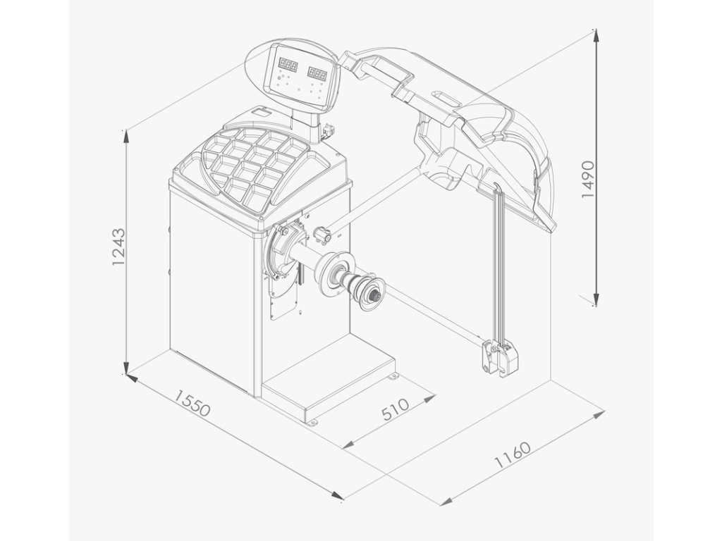 Vyvažovačka s bohatým výberom volieb pre plne automatické dynamické či statické vyváženie kolesa. Je vybavená kvalitným a stabilným mikroprocesorom zaisťujúcim všetky systémové funkcie. Mechanická hlavný hriadeľ je veľmi presná, odolná proti opotrebeniu, a pracujúce s nízkou hlučnosťou. Orientáciu a ovládanie stroja uľahčuje jednoduchý, dobre čitateľný displej. K zvýšeniu pracovného komfortu prispieva premyslený systém priehradok na vrchnej doske stroja, vďaka ktorým má mechanik neustále po ruke všetko potrebné (náradie, závažia atď.).