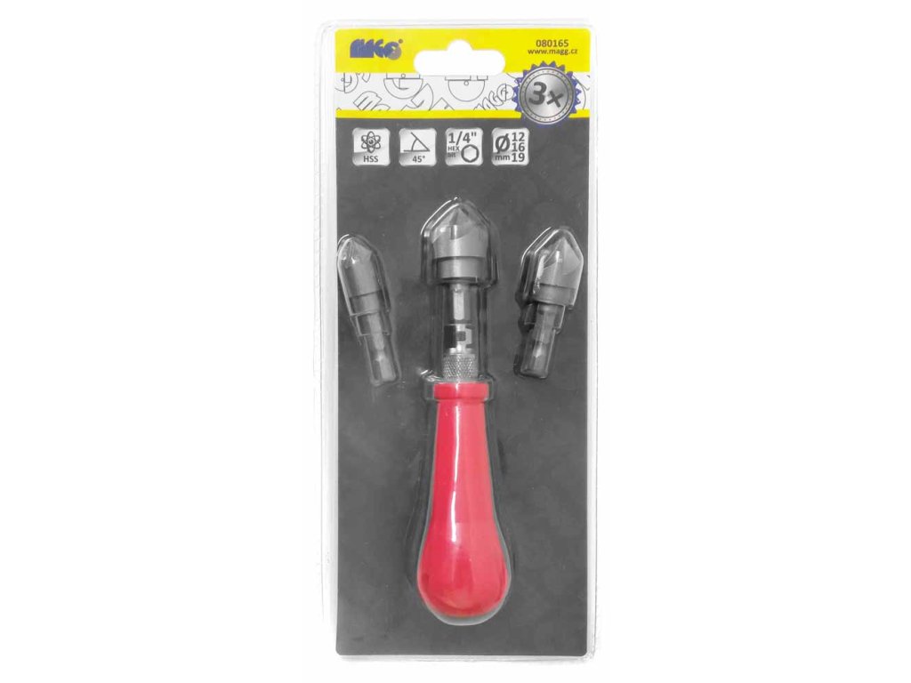 Záhlbníky s madlom, 3 ks, priemer 12, 16, 19 mm, rýchlorezná oceľ – MAGG.