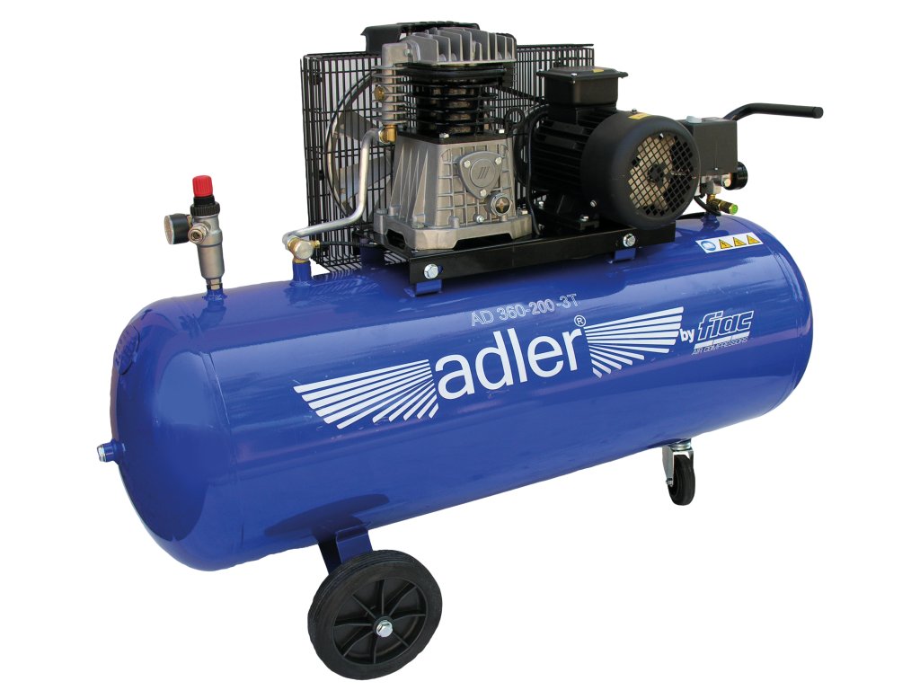 Model AD 360-200-3T má nádrž s objemom 200 litrov, motor s výkonom 3,0 HP a čerpadlo AD360, dobre známe z menších modelov, ktoré poskytuje dobrý praktický výkon a umožňuje jeho použitie v automobilových aplikáciách, ako sú napríklad pneuservisy.