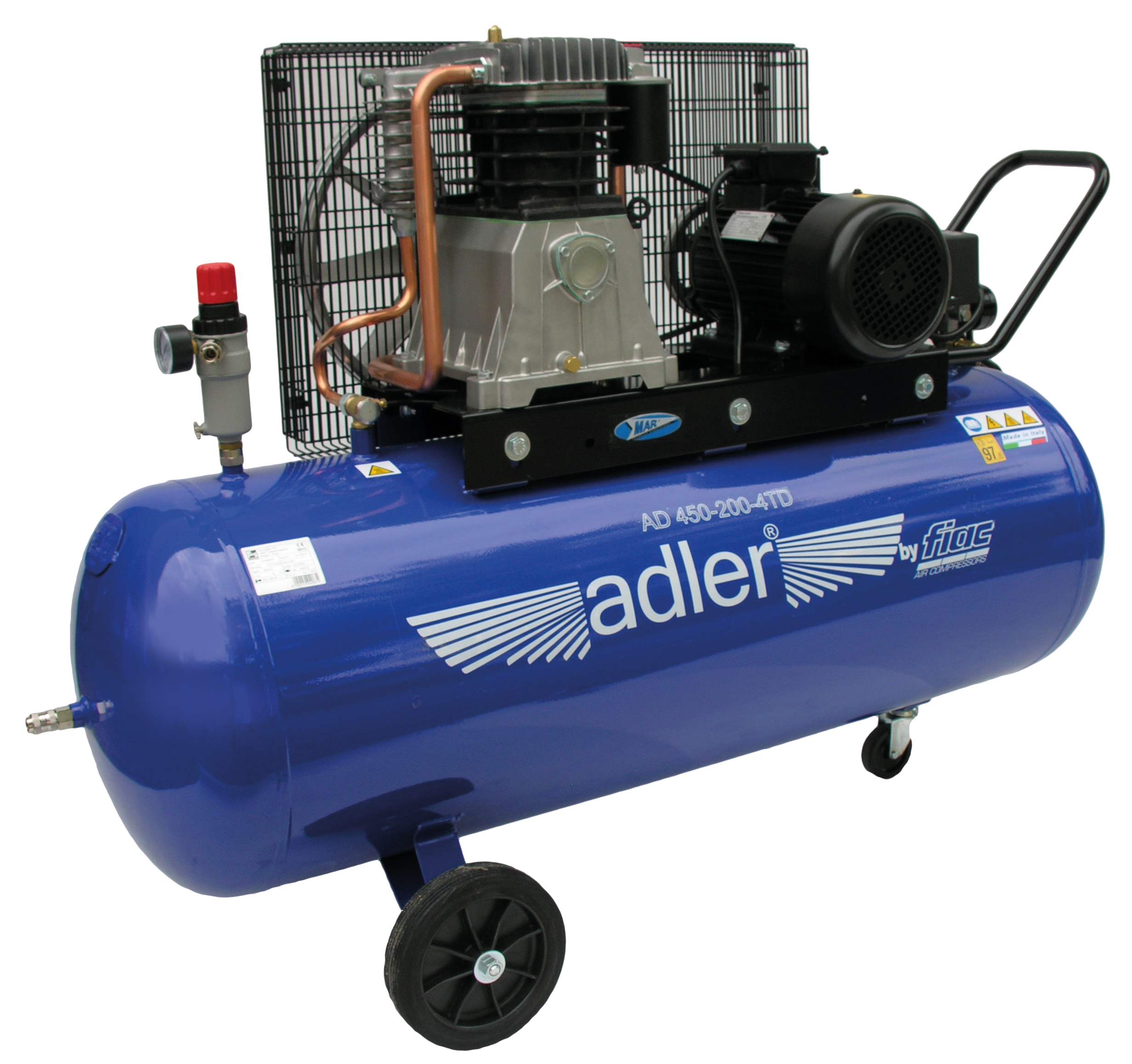 Vzduchový kompresor špeciálne vyrobený renomovanou talianskou spoločnosťou FIAC. Pri vývoji zariadení tohto radu boli použité najnovšie technologické riešenia na vytvorenie výrobkov najvyššej kvality. Zariadenia sú vybavené liatinovými valcami, tlakovými spínačmi s ventilom na jednoduchý štart a ochranou proti preťaženiu. Kompresory Adler by FIAC sa vyznačujú vysokou účinnosťou a zvýšenou životnosťou čerpadla. Zároveň sa výrazne znižuje spotreba oleja vďaka presnému vyváženiu kľukového hriadeľa. Zväčšená plocha rebier hlavy výrazne zlepšila chladenie, a tým aj účinnosť zariadenia.